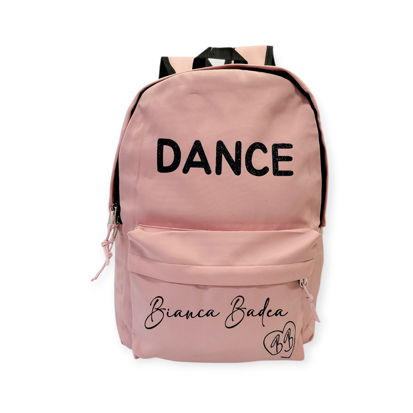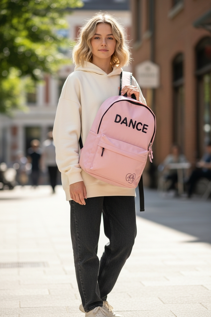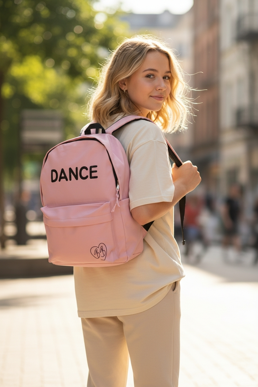 Ghiozdanul DANCE are un design cool datorita inscriptiei cu sclipici.