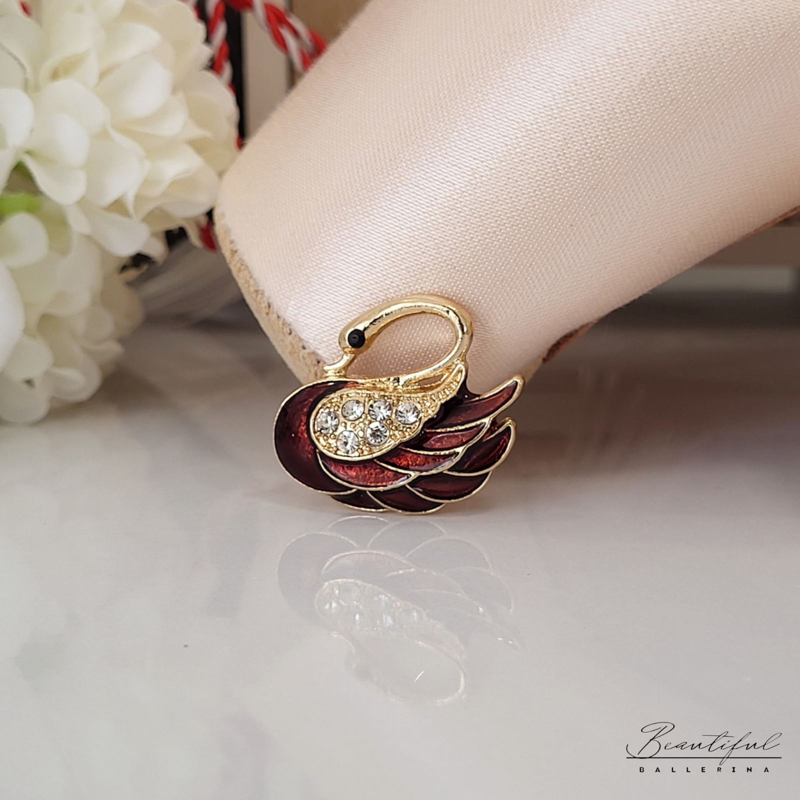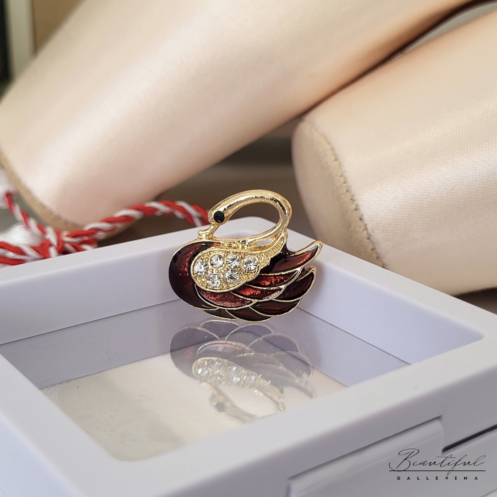 Brosa martisor in forma de lebada accesorizata cu pietre albe si perla realizata pe baza aurie din metale comune. Un accesoriu elegant, nobil, ideal pentru a fi oferit persoanelor dragi.